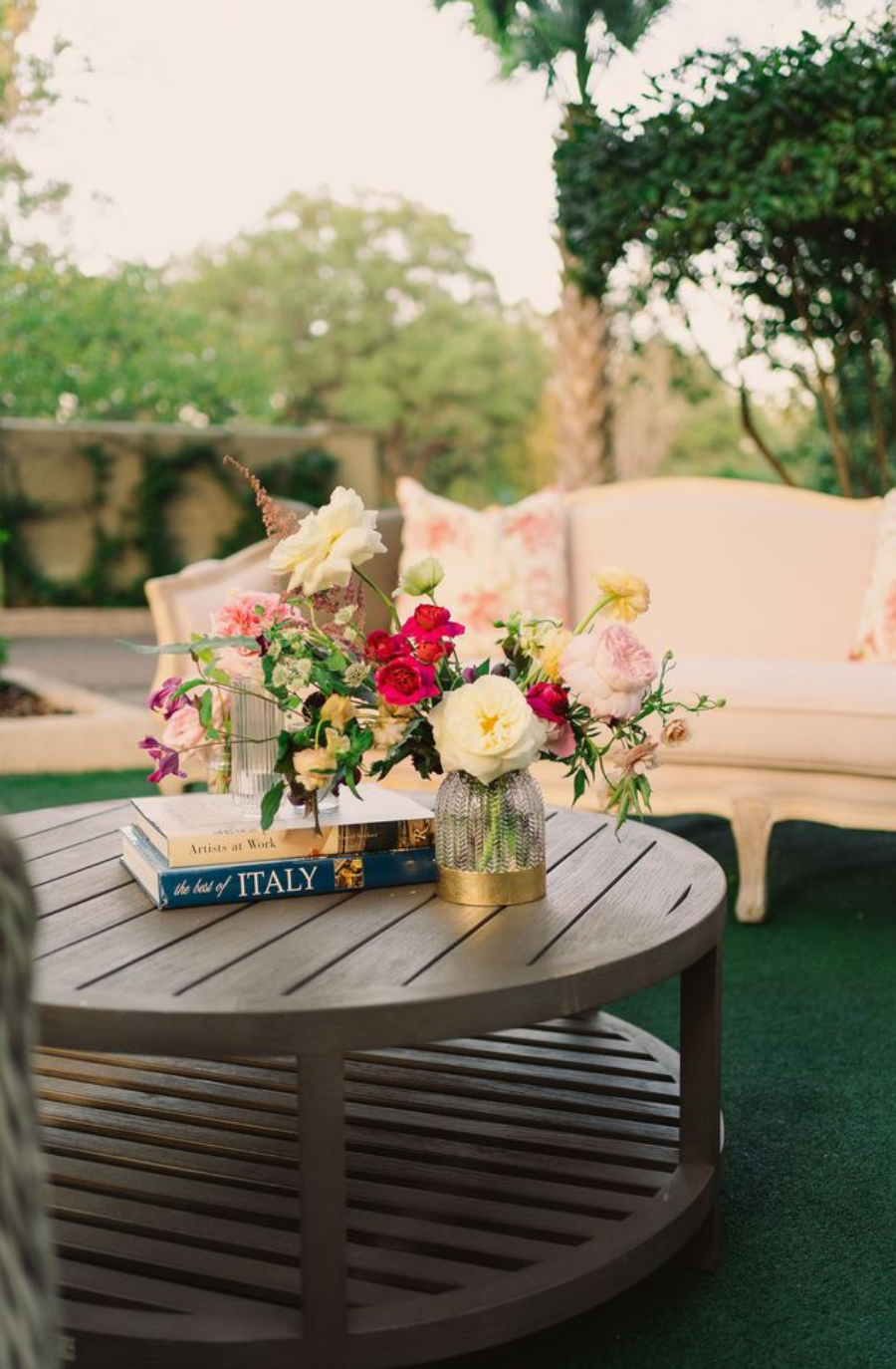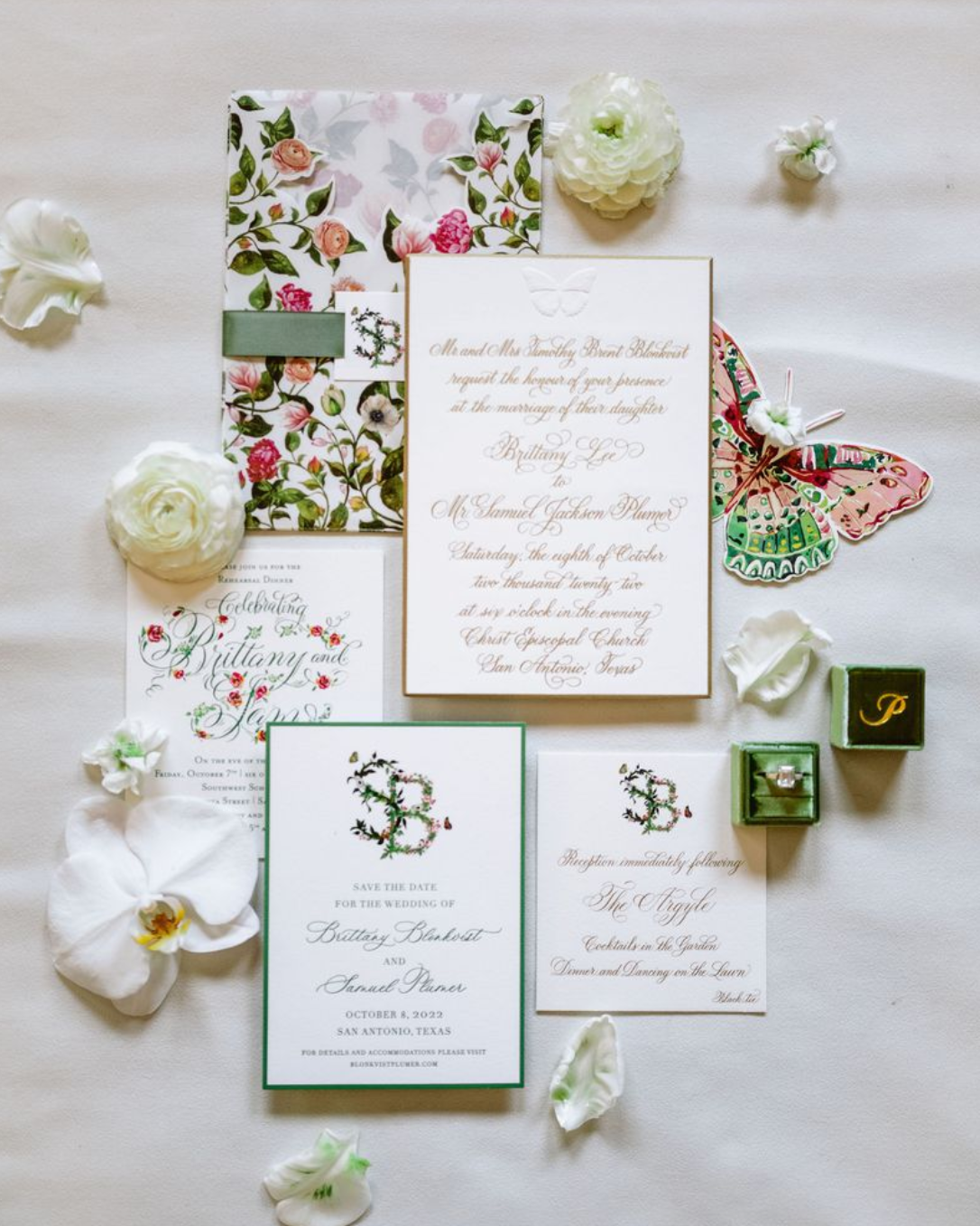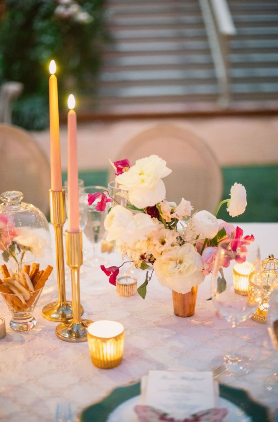 Floral installations, vintage books, golden cages, florals enclosed in cloches embellished this dreamy wedding in San Antonio, TX